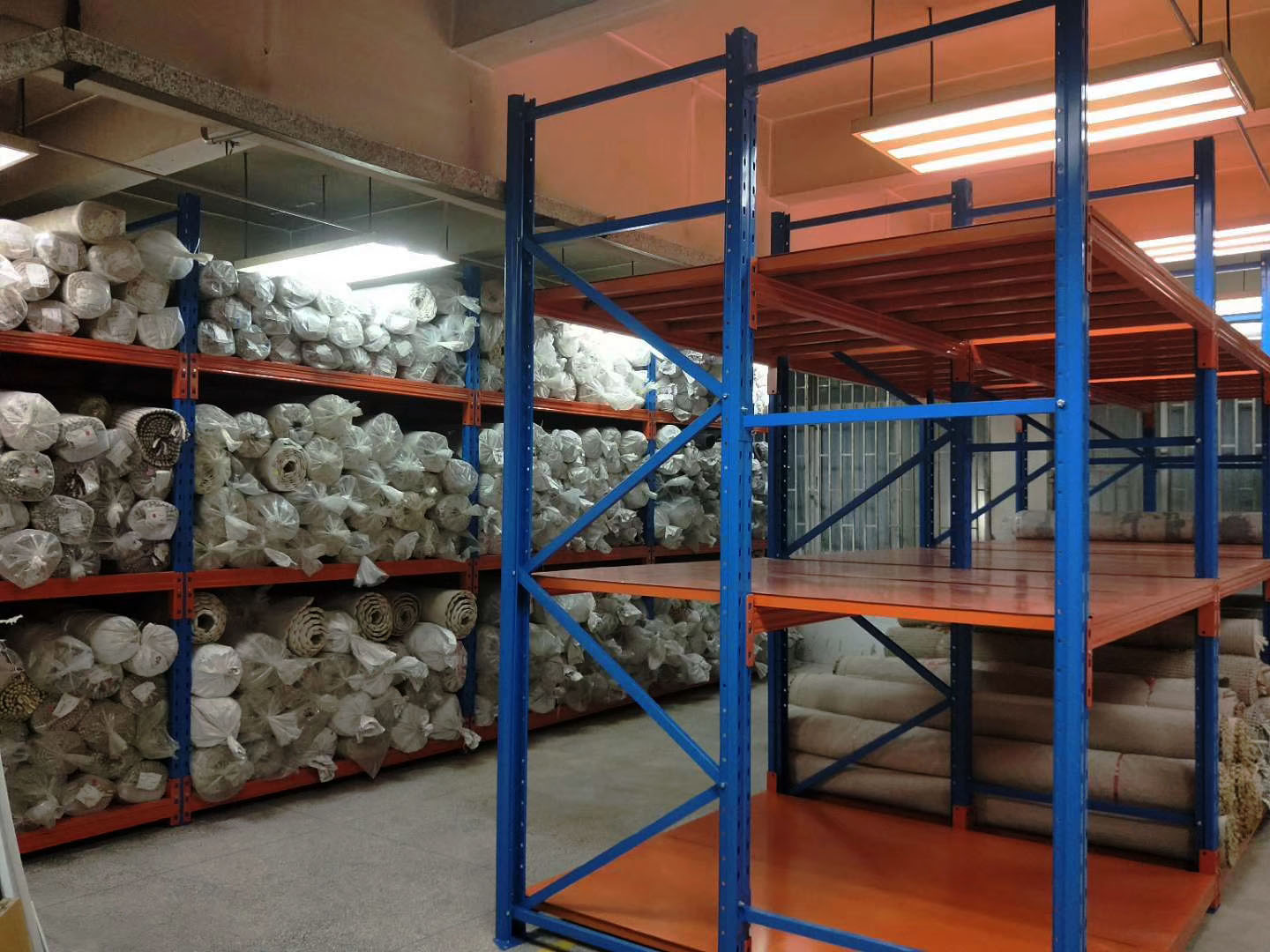 布料倉庫貨架其堆放的布匹,大多是卷狀的,其本身沒有大的支撐力,所以我們在設計貨架時,多使用木層板貨架或鋼層板貨架,布料直接放在層板上。