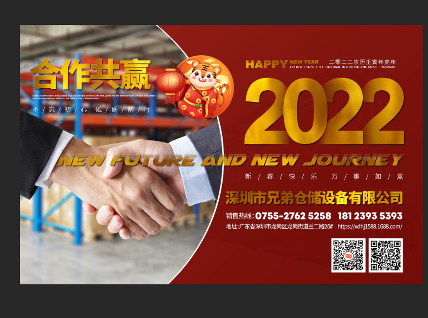 兄弟貨架工廠為了回饋新老顧客,在年底進行貨架大促銷不僅價格優惠,還特意給客戶們定制2022新年臺歷及筆記本、水杯、雨傘、凡是12月份下訂單的客戶都有機會領取精美禮物一份哦,下面小編帶大家看看新年臺歷吧,同時深圳貨架廠家也祝所有的客戶新年大吉,萬事如意!