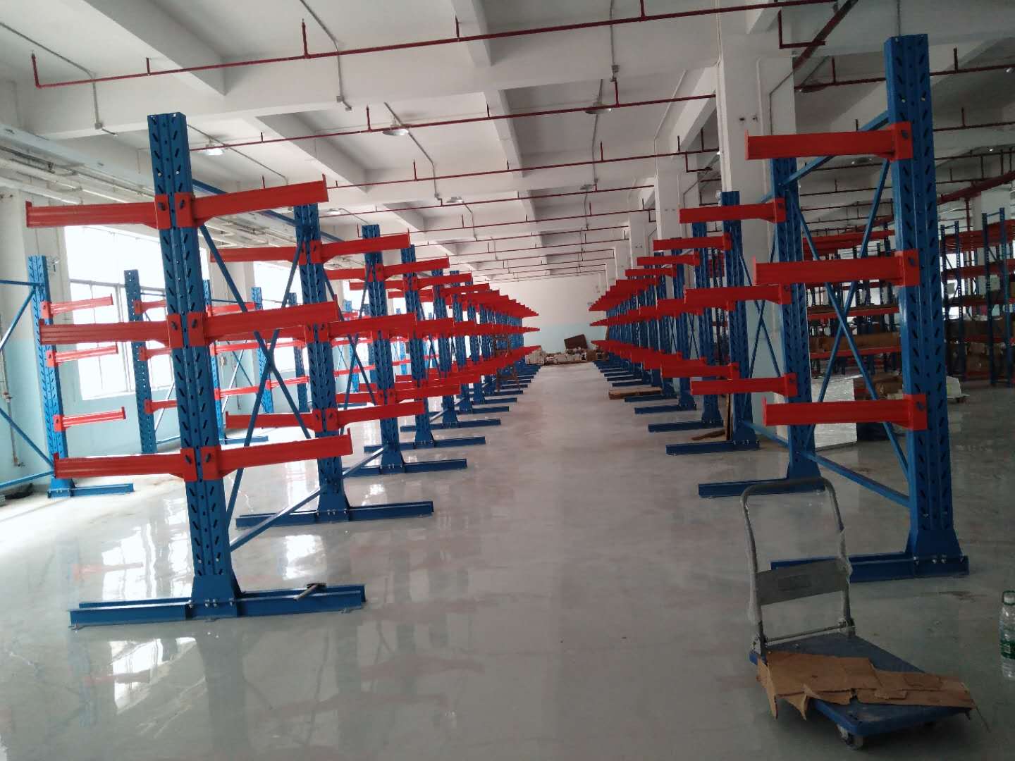 懸臂式貨架是貨架中重要的一種。適用于存放長物料、環(huán)型物料、板材、管材及不規(guī)則貨物。可以是單面或雙面,懸臂式貨架具有結(jié)構(gòu)穩(wěn)定,載重能力好、空間利用率高等特點。懸臂式貨架立柱多采用H型鋼或冷軋型鋼,采用方管、冷軋型鋼或H型鋼,懸臂與立柱間采用插接式或螺栓連接式,底座與立柱間采用螺栓連接式,底座采用冷軋型鋼或H型鋼。